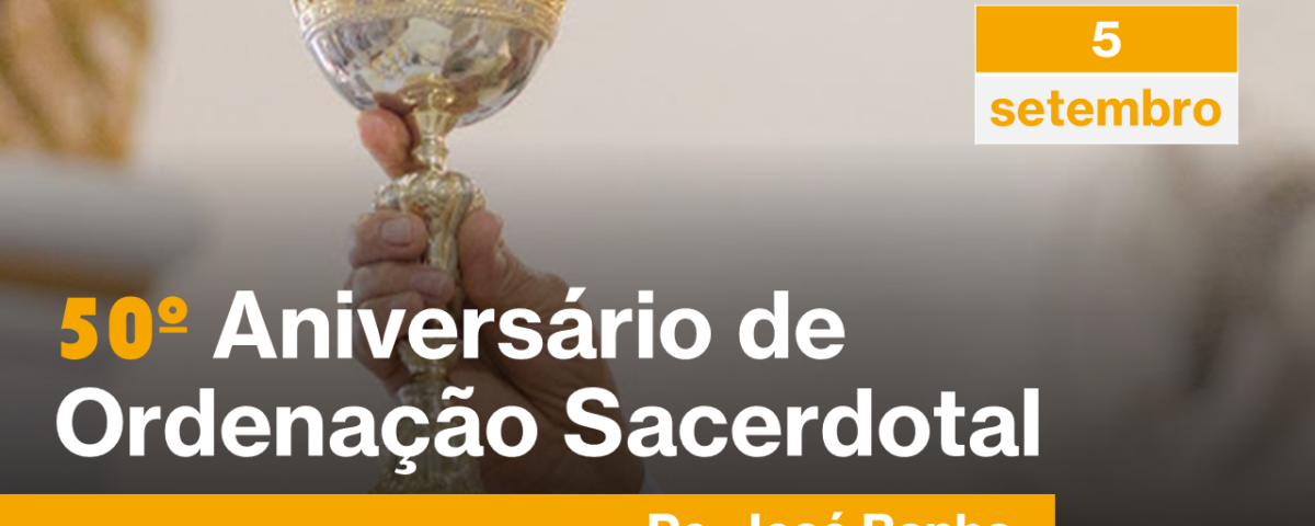 Tenho a alegria de participar a celebração do meu Jubileu da Ordenação Sacerdotal (50 anos), no dia 5 de setembro de 2024 (quinta-feira), na igreja paroquial da Sagrada Família – Chaves, com o seguinte programa: