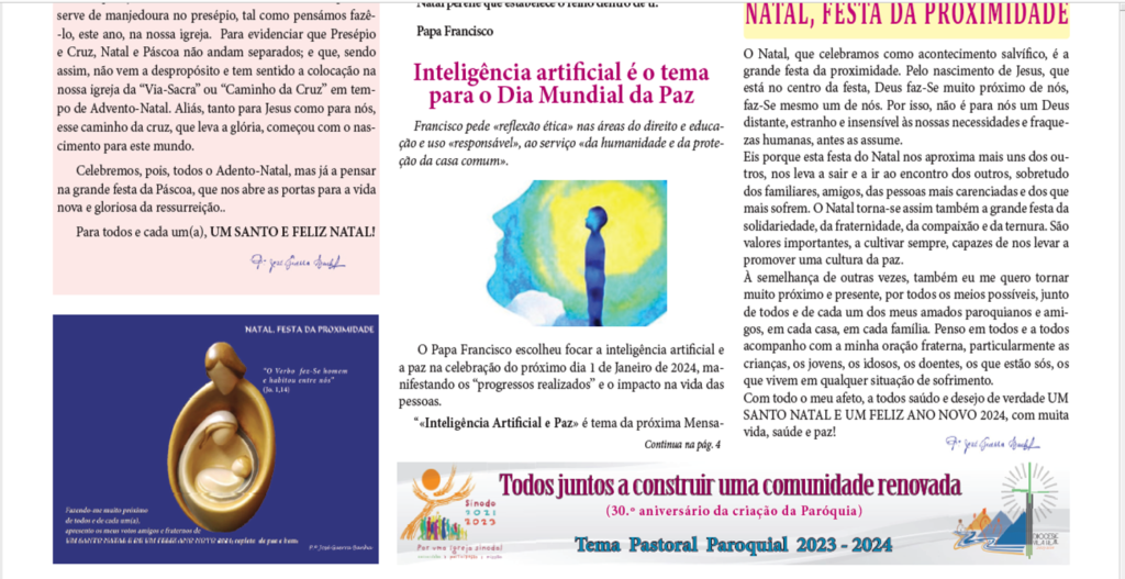 23/02/2024 ASSUNTO: EUCARISTIA DA FAMÍLIA Caros Pais, Caros Menino(a)s Caros Jovens Caros Catequistas Olá a todos vós! Como vosso Pároco, […]